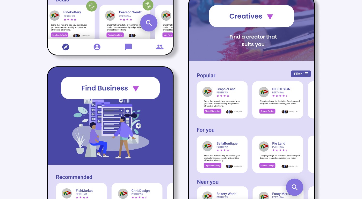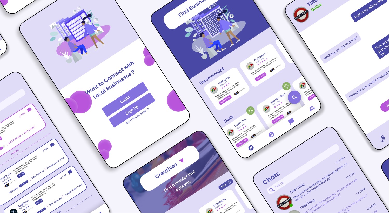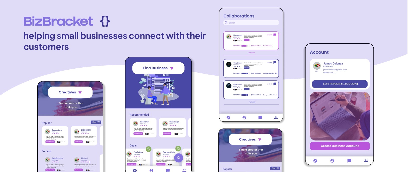 BizBracket is a mobile app concept designed to connect small businesses and help them support one another through shared resources, partnerships, and opportunities. The platform allows businesses to discover nearby companies, exchange services, and access exclusive deals that benefit both parties. By creating a network where businesses can collaborate rather than compete, the app aims to strengthen local business ecosystems. Ultimately, BizBracket promotes growth and sustainability for small businesses by making collaboration more accessible and mutually beneficial.